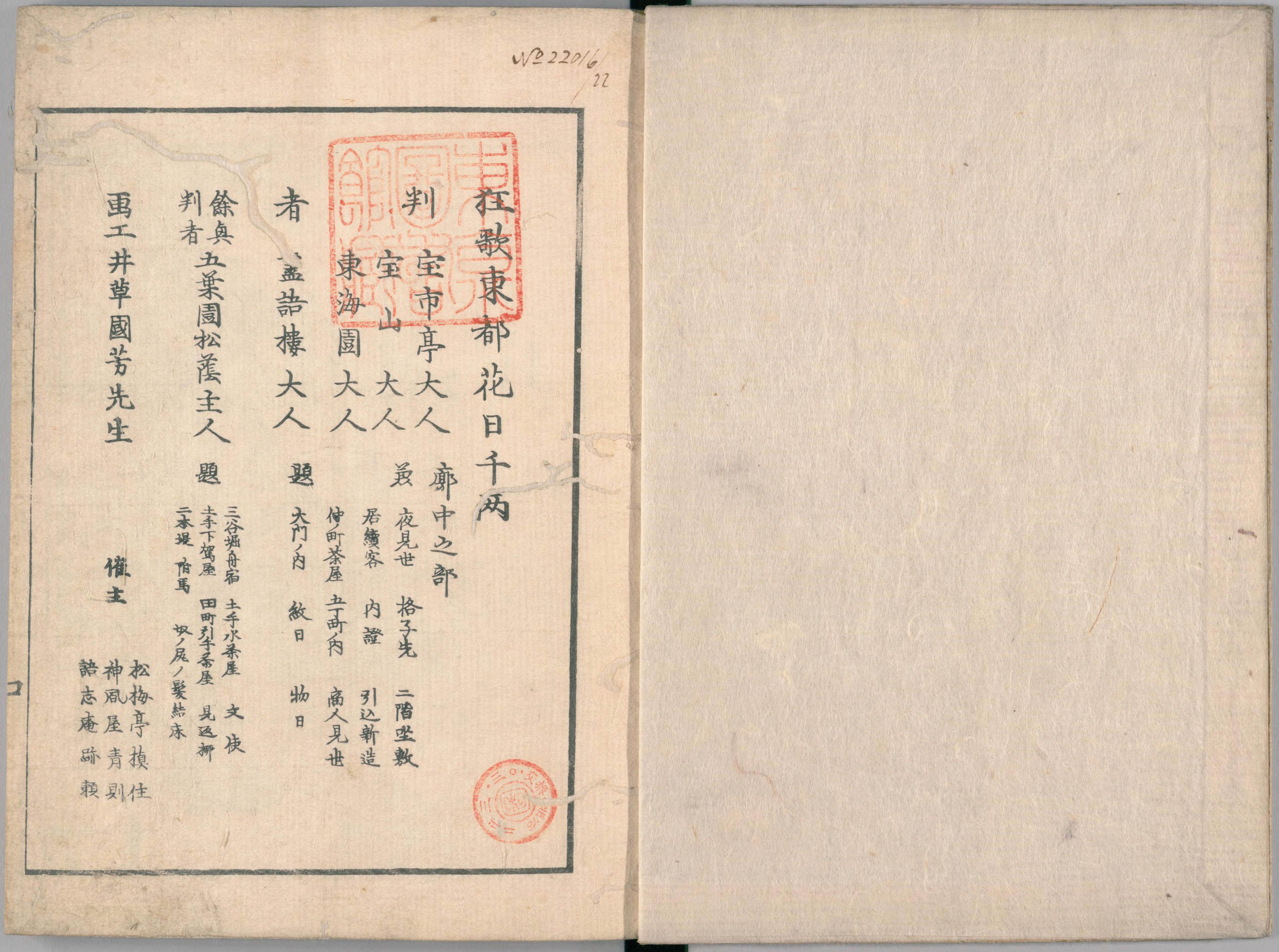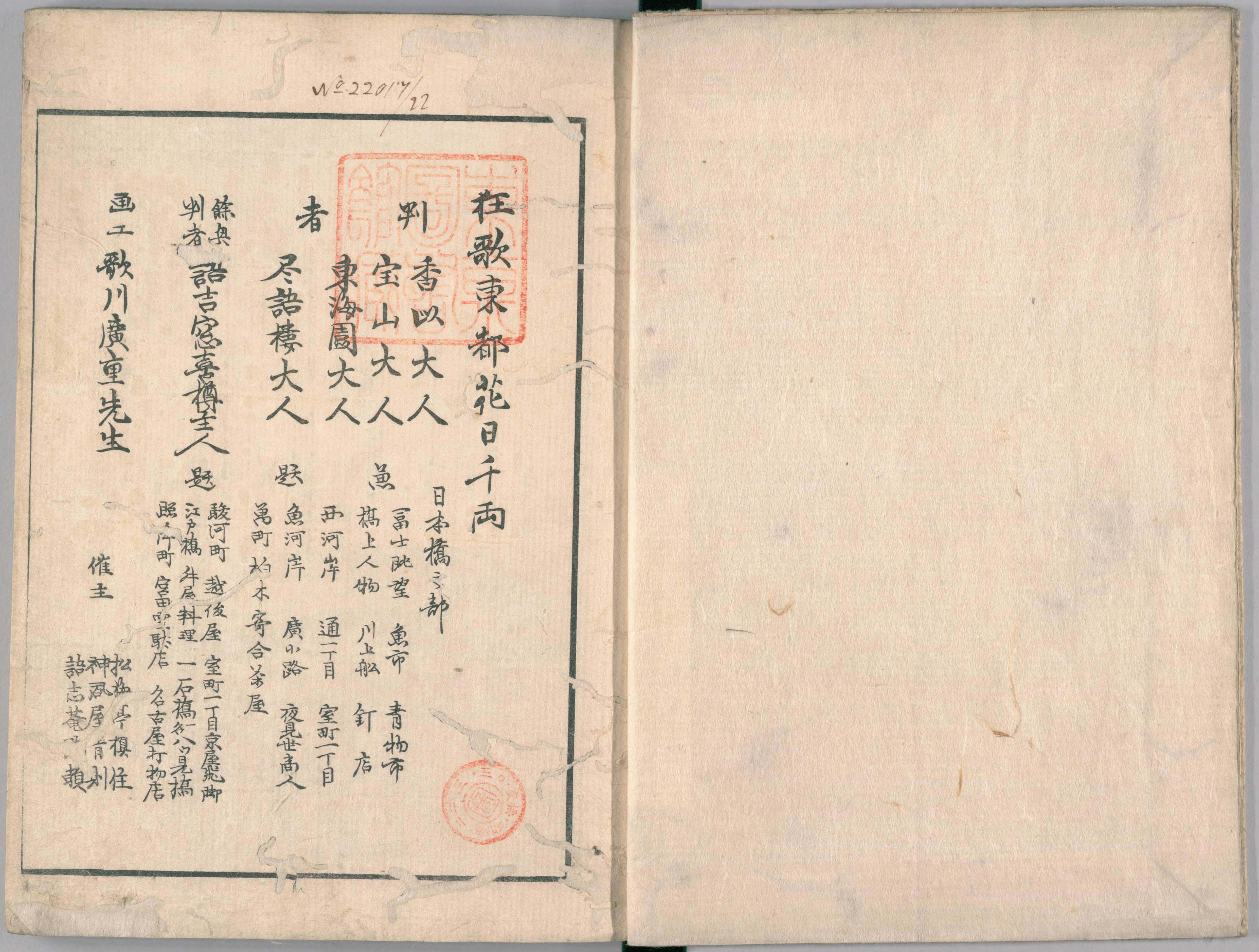 Toto Hanaichisen References: NDL In 3 volumes illustrated by Hiroshige, Kuniyoshi and Kunisada. Volume 1(Hiroshige), Volume 2 (Kuniyoshi), Volume 3 (Kunisada)