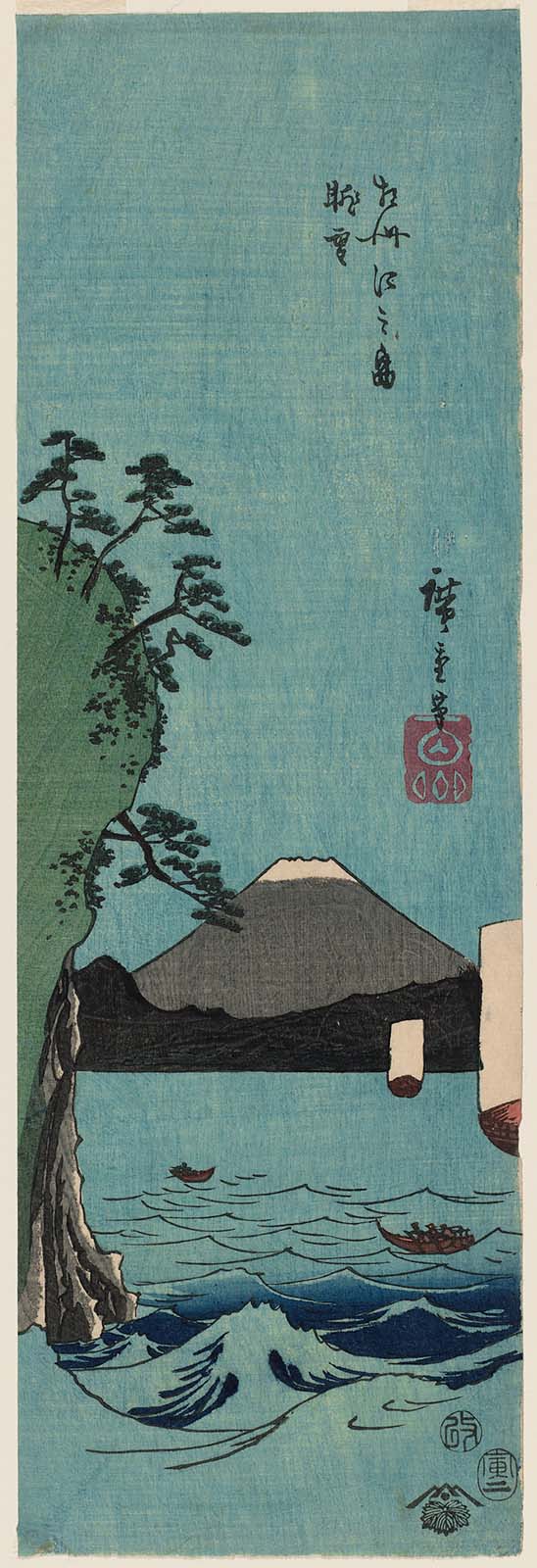 The second edition has the fan printed in red only. [Japanese Prints London]