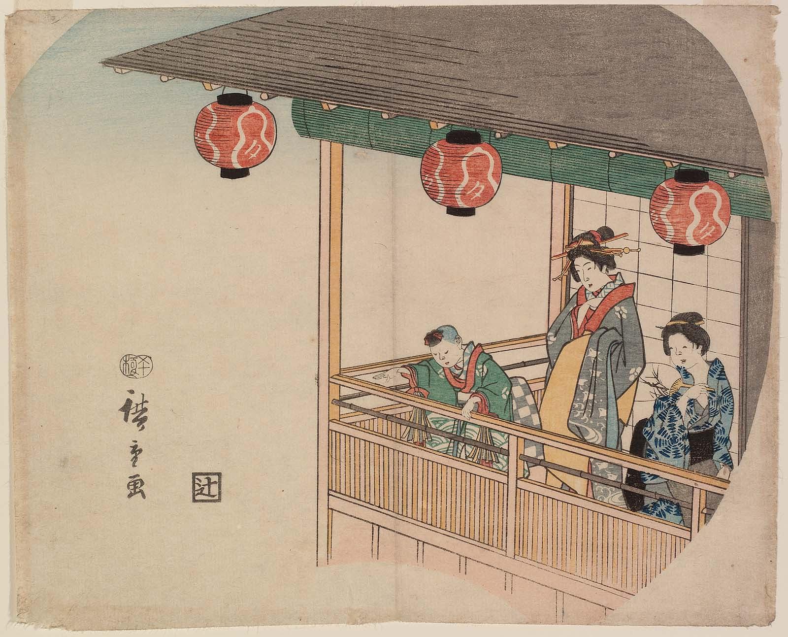 Courtesan and Attendants on Balcony