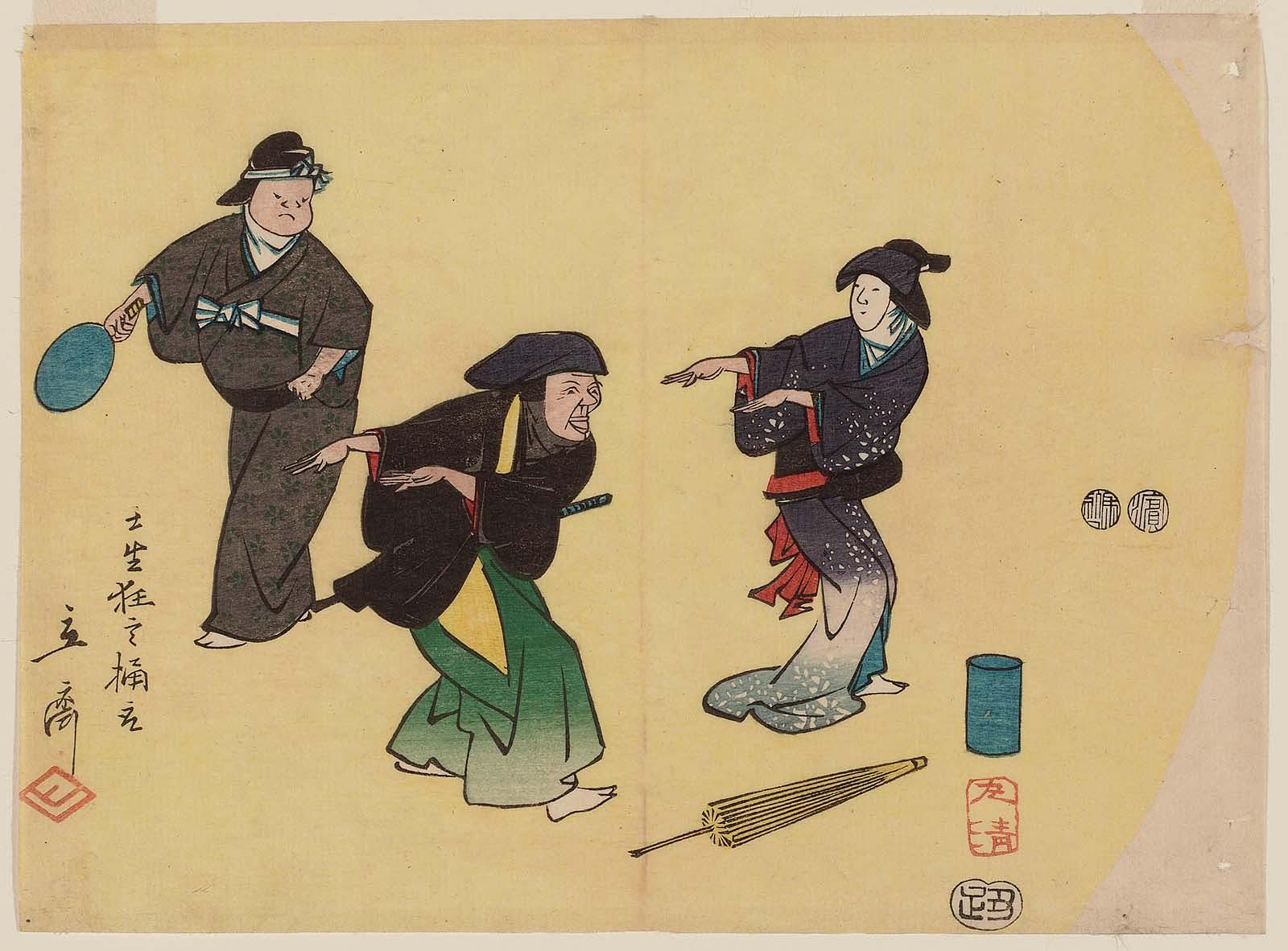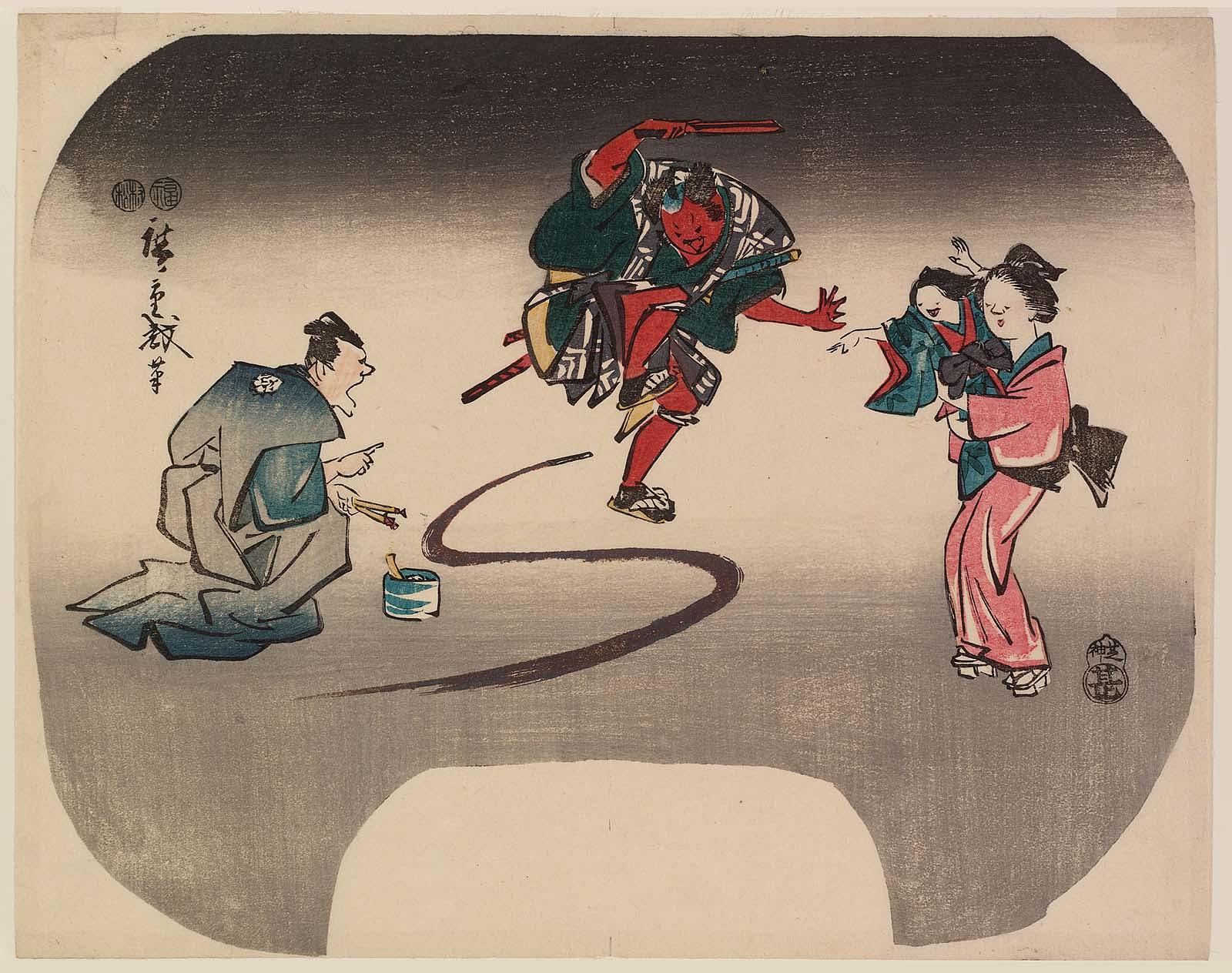 Kabuki Characters Nikki Danjō and Arajishi Otokonosuke Imitating a Monkey Performance