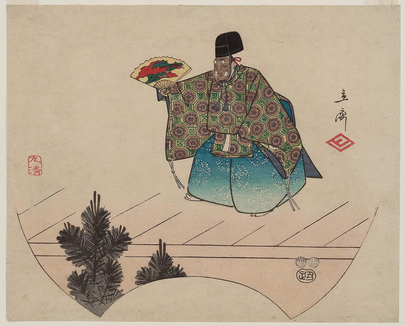 Scene from Noh play with two figures