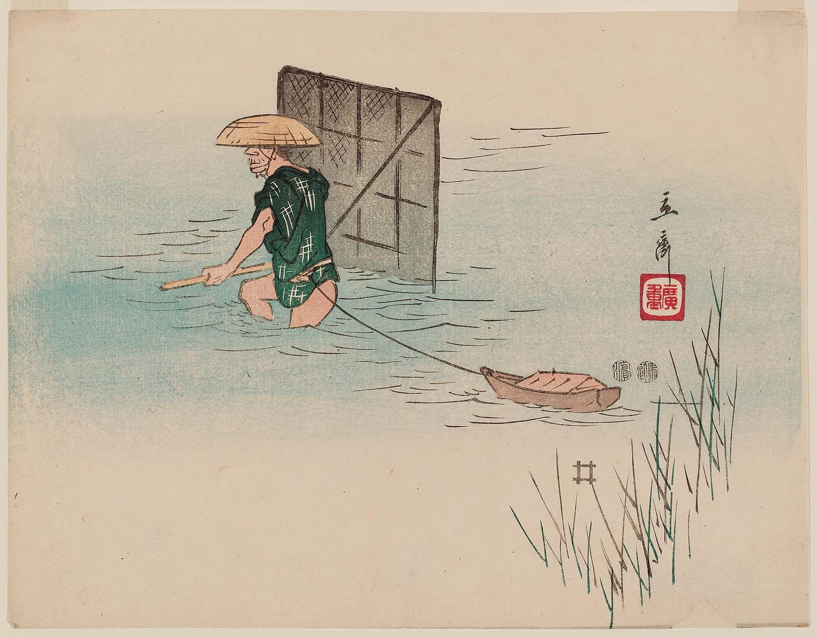 Wading Fisherman with a Scoop Net